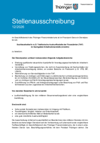 Stellenausschreibung 12/2026 Im Geschäftsbereich des Thüringer Finanzministeriums ist im Finanzamt Gera ein Dienstpos ten als Sachbearbeiter/in m.D. Telefonische Auskunftsstelle der Finanzämter… mehr