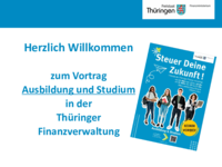 Herzlich Willkommen zum Vortrag Ausbildung und Studium in der Thüringer Finanzverwaltung Ausbildung und Studium Ausbildung und Studium Was macht ein Finanzamt? • Finanzämter führen das… mehr
